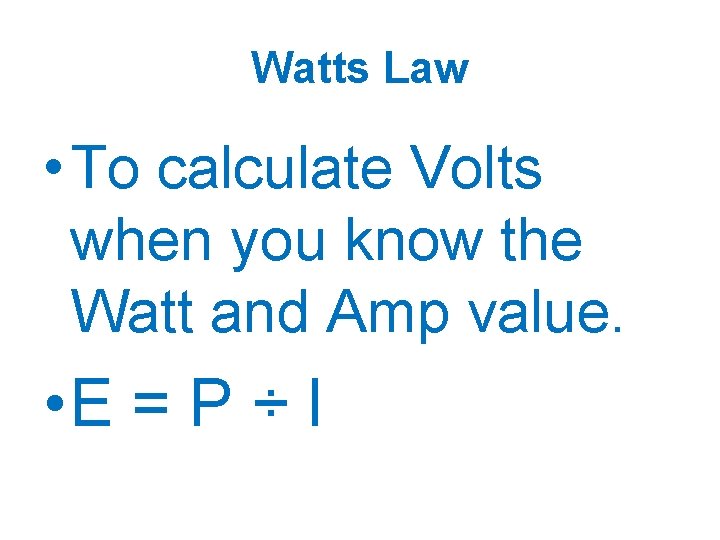 Power (in watts) = voltage (in volts) x current (in amps) p = v i combining with ohm's law we get two other useful forms: